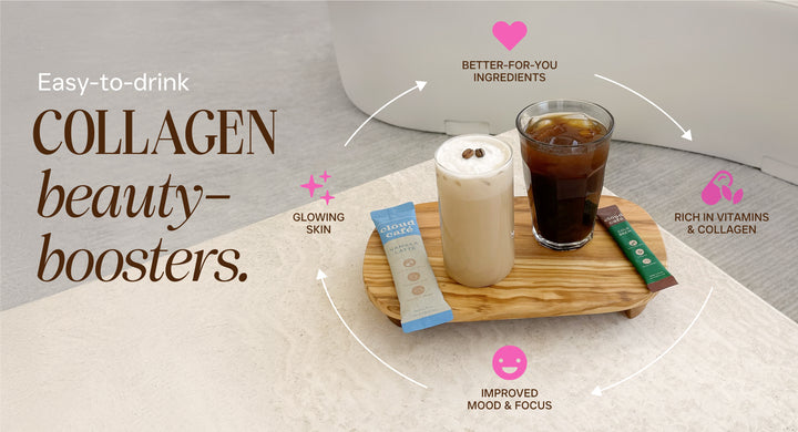 More than a drink, Clöud Café™ was crafted with specialty-grade ingredients to help you move through your day with ease. Nurtured with beauty-boosting Marine Collagen, Hyaluronic Acid, & wellness-inspired blends for inner & outer glow. Beauty beverages for your peaks and lows, your self-care rituals, your everyday.