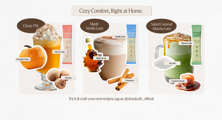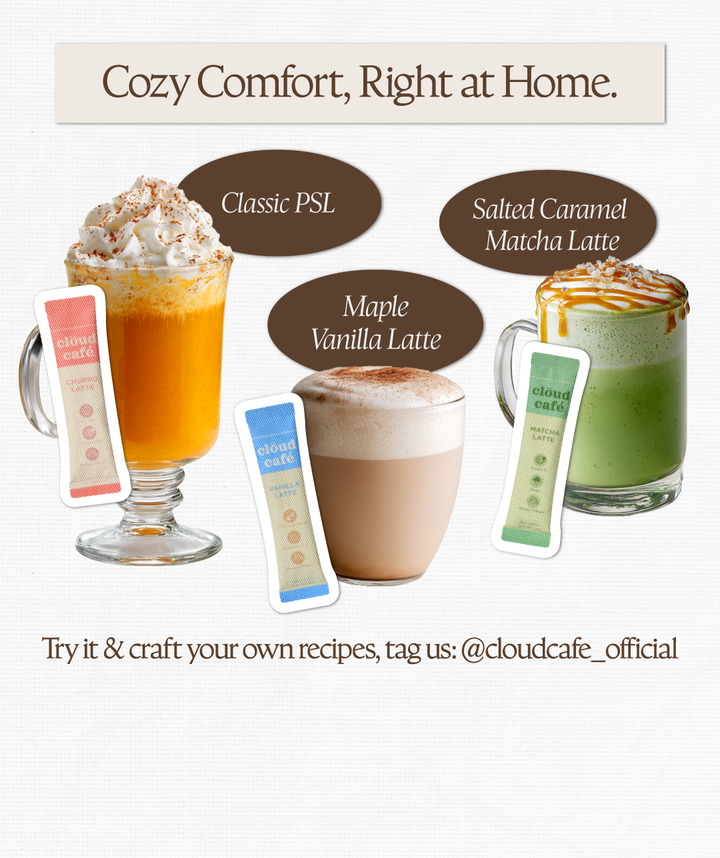 Customize your Clöud Café beverages and brew it to your liking. Want a creamier blend? Substitute water with milk of choice.